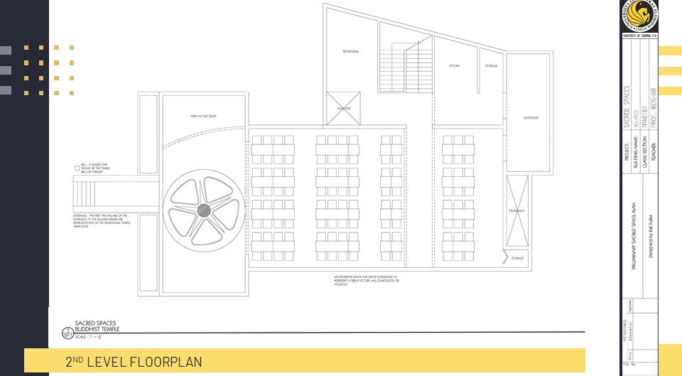 I was tasked with designing a place of worship or other religious environment that tells the story of a specific religion. I chose to base my religious environment on Japanese Buddhism. The environment had to be based upon the doctrine and canon of the actual religion. The environment could not be based upon the traditional or existing structures associated with the Japanese Buddhist religion but must convey the narrative (the story) of the religion through form, proportion, interaction, scale, and visual aesthetic. The design of the space facilitates interaction that enforces traditional observation of Japanese Buddhism.